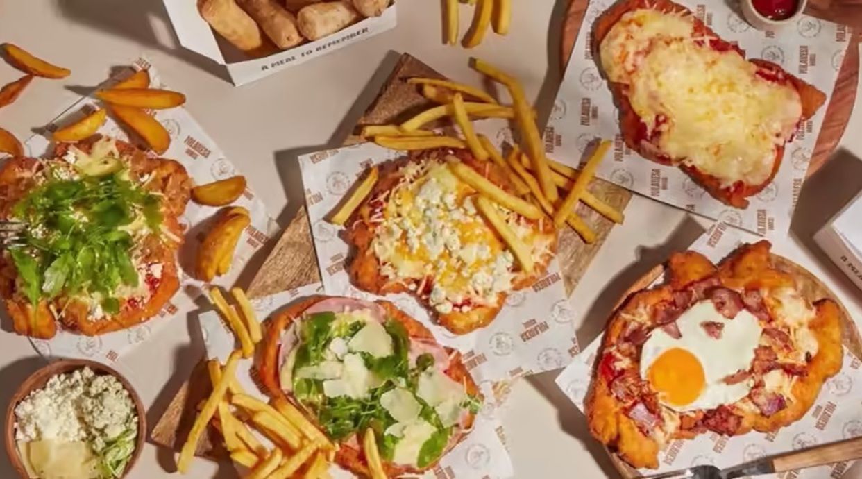 Milanesa de pollo, con salsa de tomate casera, mozzarella fundida, peperoni y un toque de cebolla fresca. Con sus patatas incluidas ¿Te atreves a probarla?