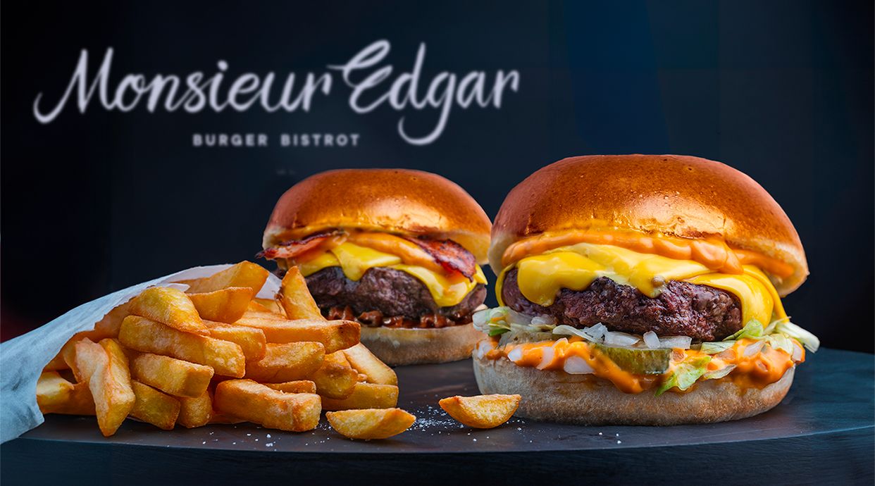 Pan brioche, hamburguesa black angus, doble queso cheddar fundido, salsa tartufata y lechuga iceberg