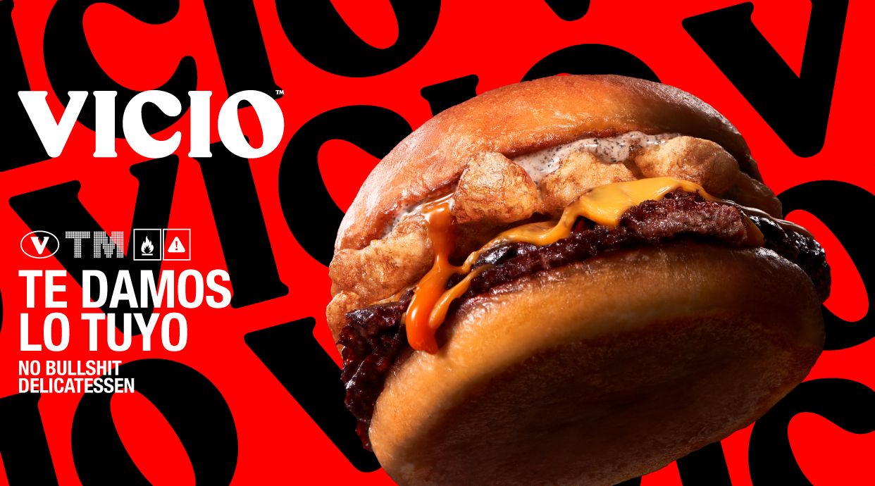 Doble smash burger, bacon crunchy, cheddar, pepinillo y salsa VICIO en un delicioso pan brioche.