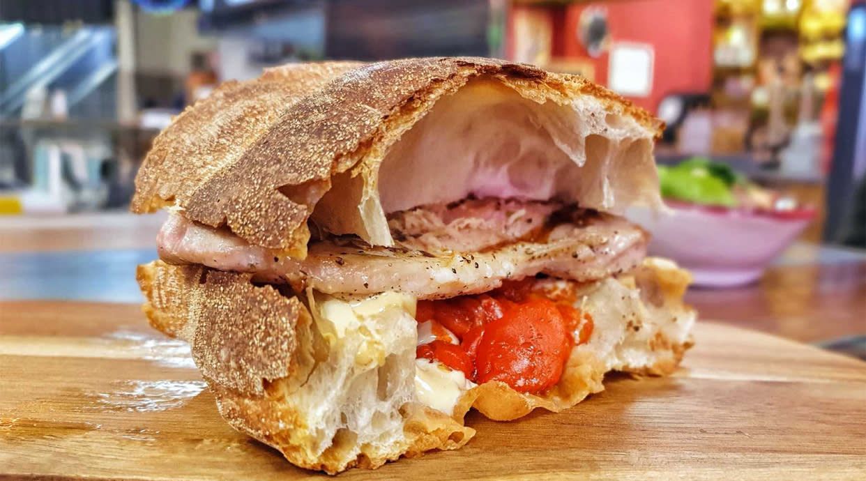 Jamón asado al corte ,con pimientos y queso en lonchas