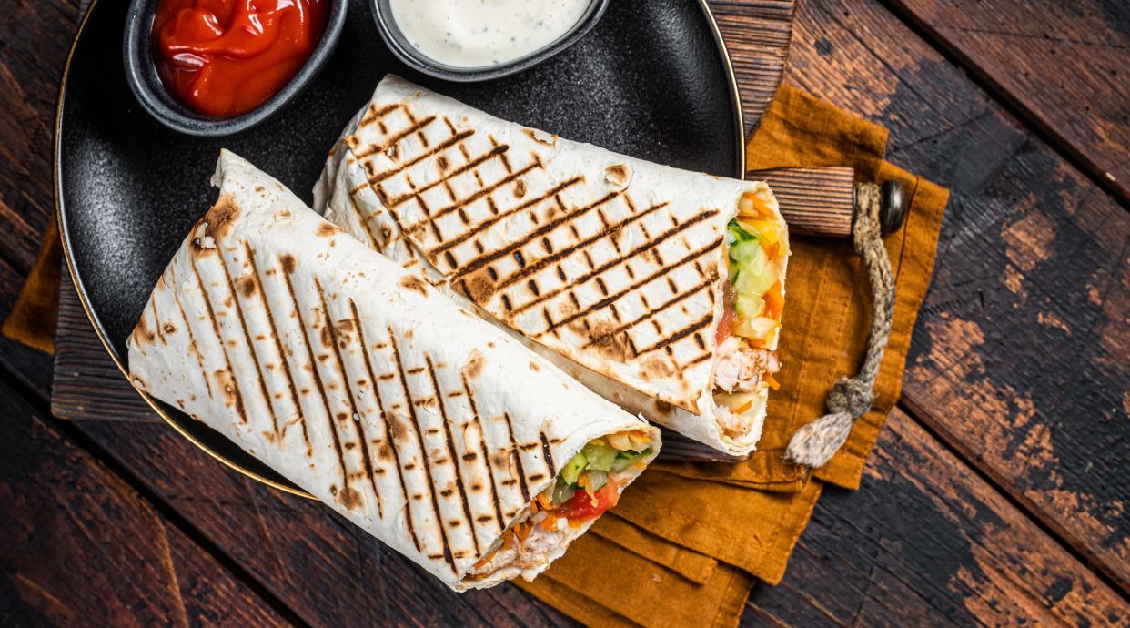 Kebab clásico en pan de pita enrollado, con carne de ternera, pollo o mixto a elegir, verduras frescas y salsa especial