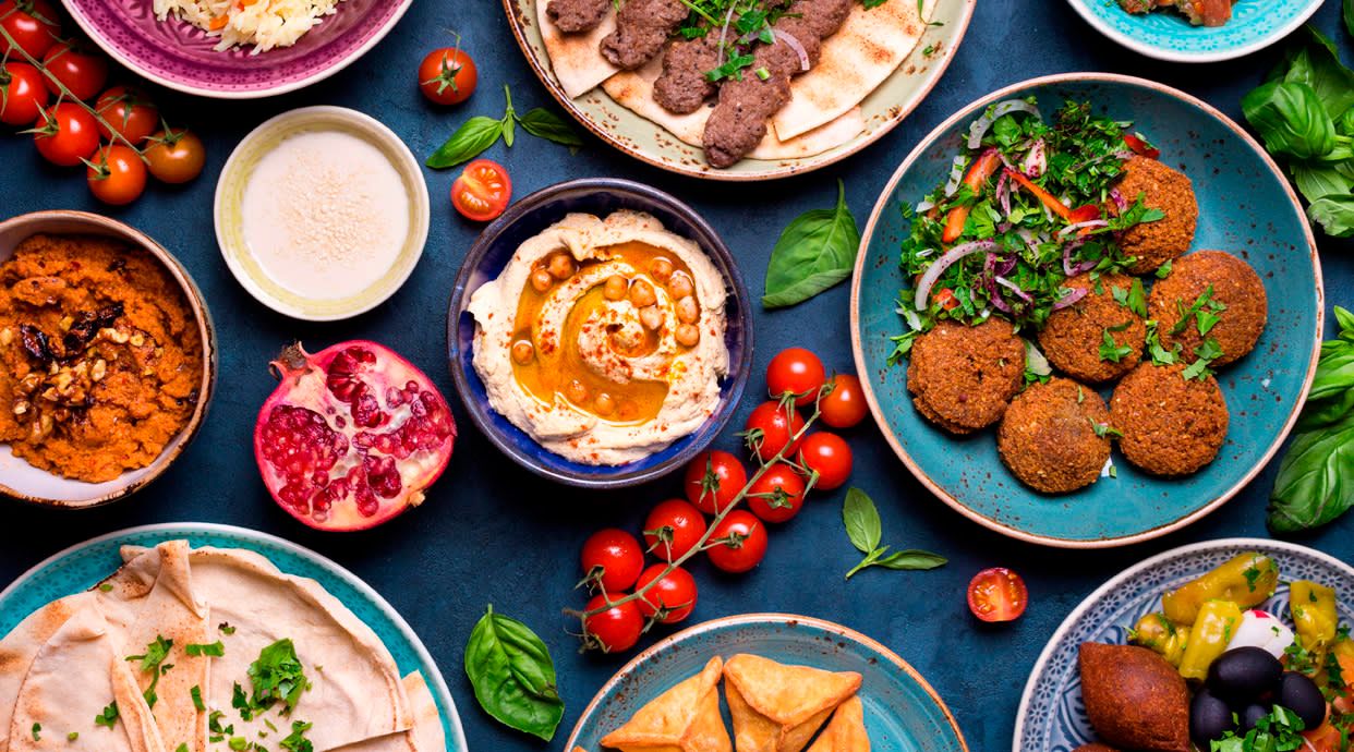 crema de garbanzos molidos con tahine, crema de sésamo y carne