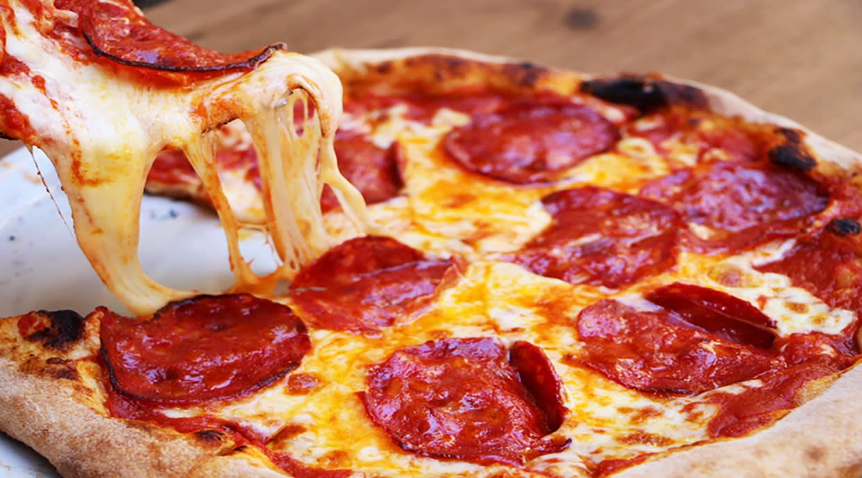 Tomate, mozzarella, chorizo, champiñones y jamón york.