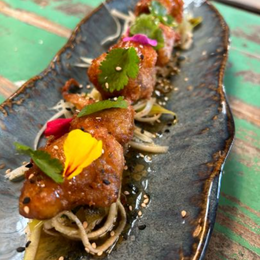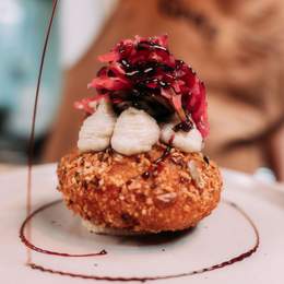 Cabernet sauvignon, cariñena, garnacha tinta, profund, complex i equilibrat, destaquen les aromes de fruita vermella madura, amb marcades notes torrades i especiades de la criança, a la boca és dens, expressiu i amb volum