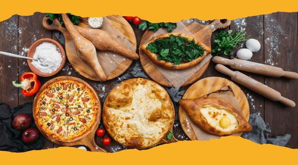 ლორი, მოცარელა, პომიდვრის სოუსი, ზეთისხილი, ცომი