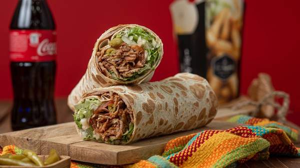 ღორის ხორცი,სალათის ფურცელი,ხახვი,პომიდორი,მაიონეზი,კეჩუპი,წიწაკა,ლავაში