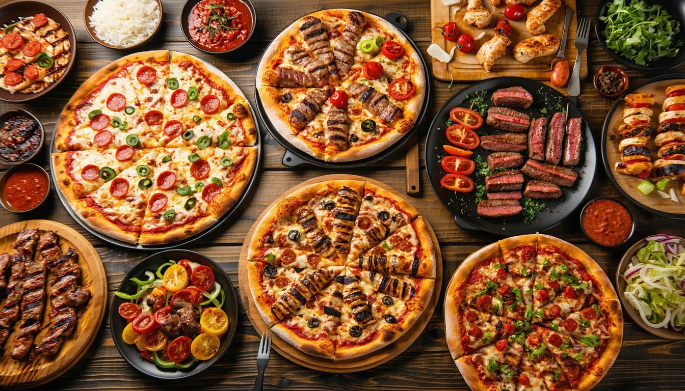 1 pljeskavica, 5 ćevapčića, 1 pileći prsa, 1 svinjski kare, 1 kobasica, pomfrit, ajvar, luk