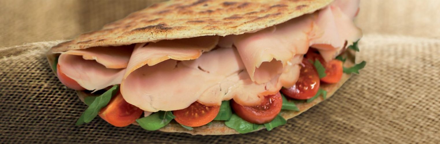 Fesa di tacchino, mozzarella, pomodorini, rucola