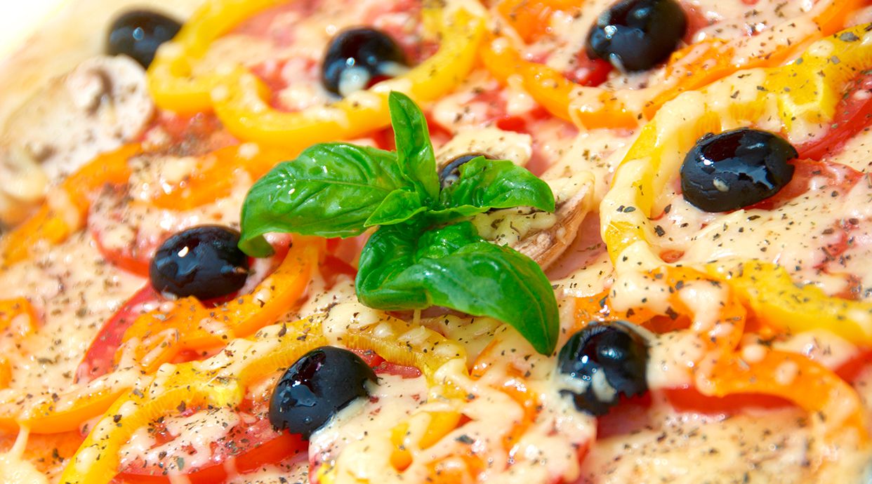 Passata di pomodoro, mozzarella, prosciutto cotto, carciofi, funghi freschi, olive taggiasche denocciolate