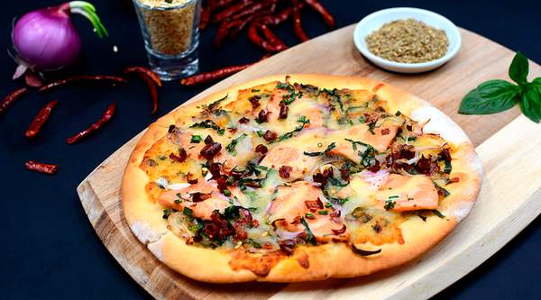 Pomodoro, mozzarella, salame piccante e gorgonzola