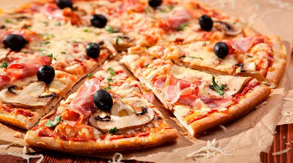 Pomodoro, mozzarella fior di latte, prosciutto cotto, olive, carciofini e funghi