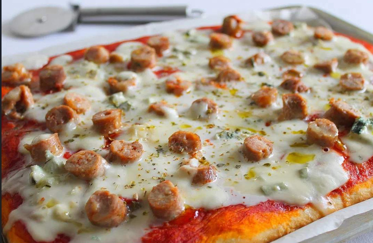 Salsa pomodoro, mozzarella, salsiccia, origano