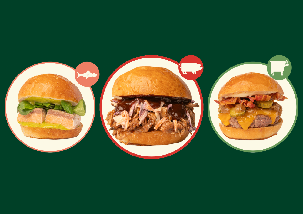 Bun senza latte e derivati Filetto di salmone 160g, guacamole, bacon e cipolla caramellata Accompagnato da nachos