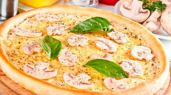 Mozzarella, pomodoro, funghi porcini, salame piccante, fontina, aglio