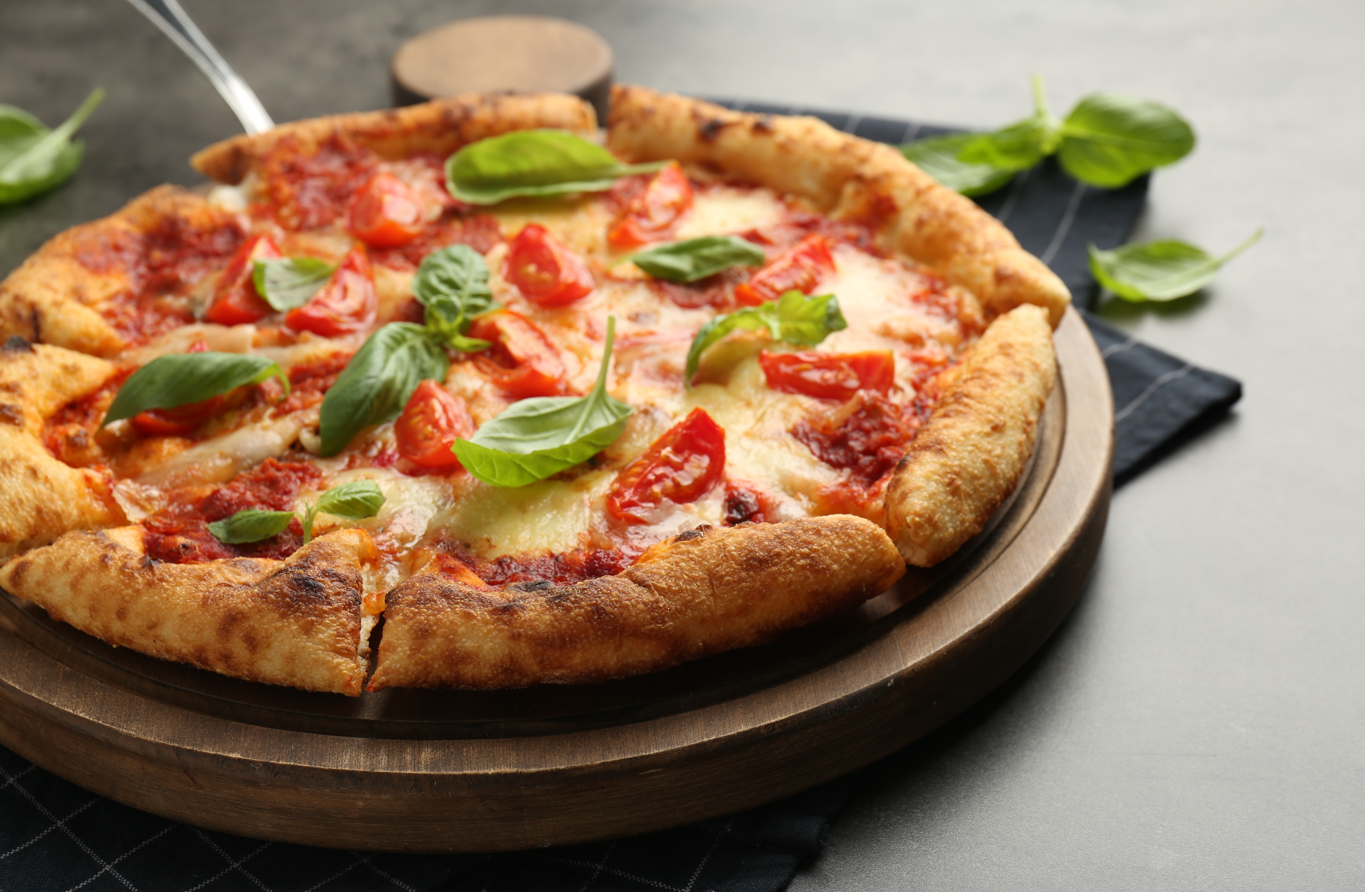 Pomodoro, mozzarella, prosciutto cotto, funghi, carciofi, olive