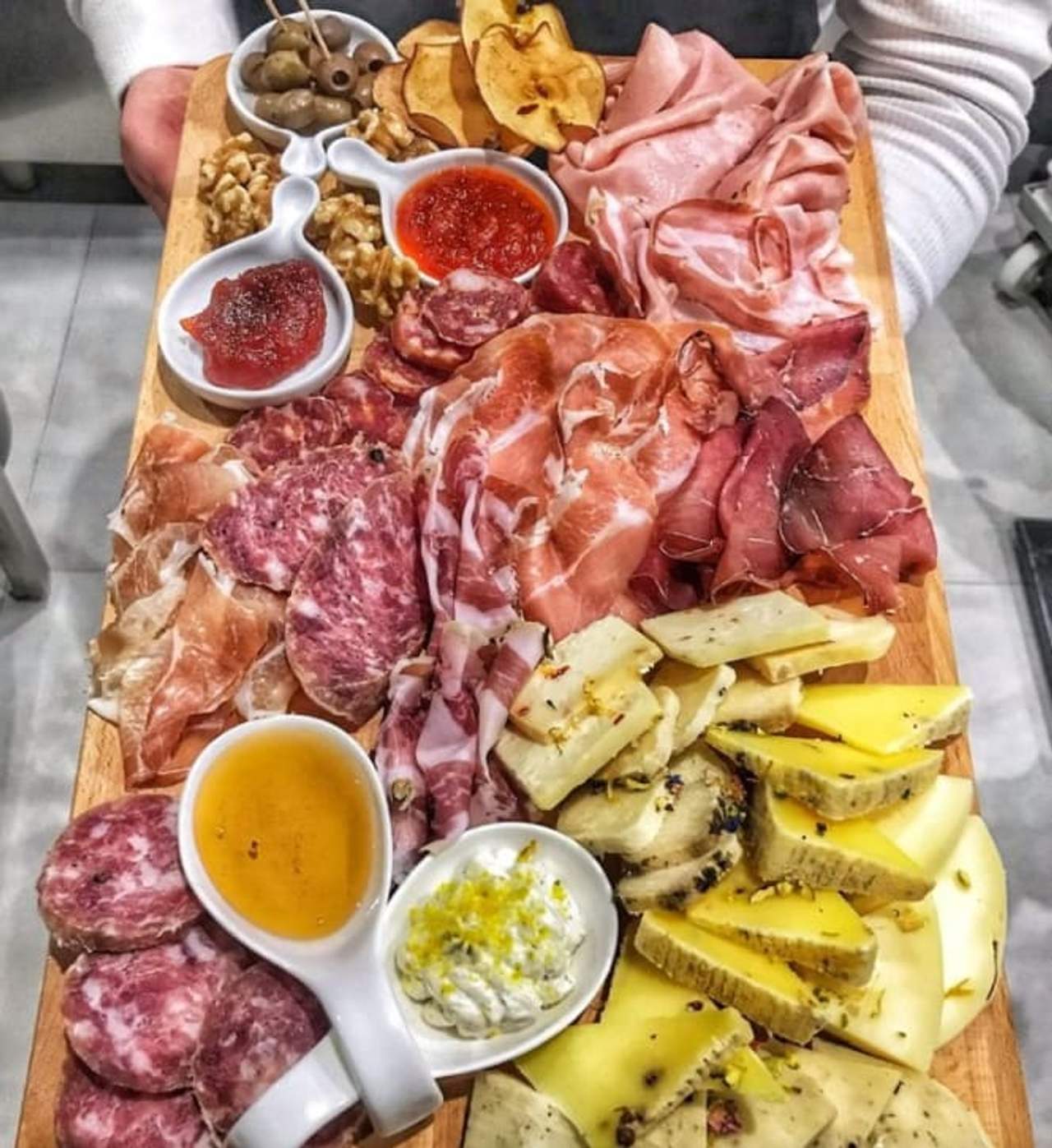 Capocollo di Martina Franca, pecorino pugliese, cipolle rosse essiccate al mosto cotto d'uva, miele millefiori pugliese e noci