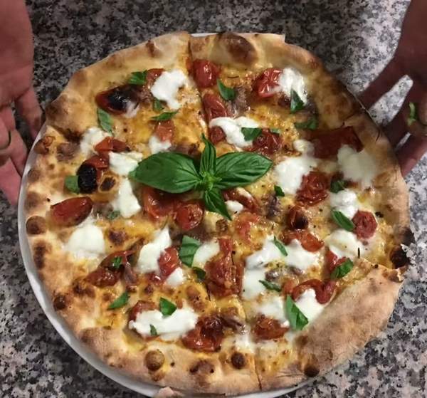 Pomodoro, mozzarella, prosciutto cotto, funghi, carciofi e acciughe