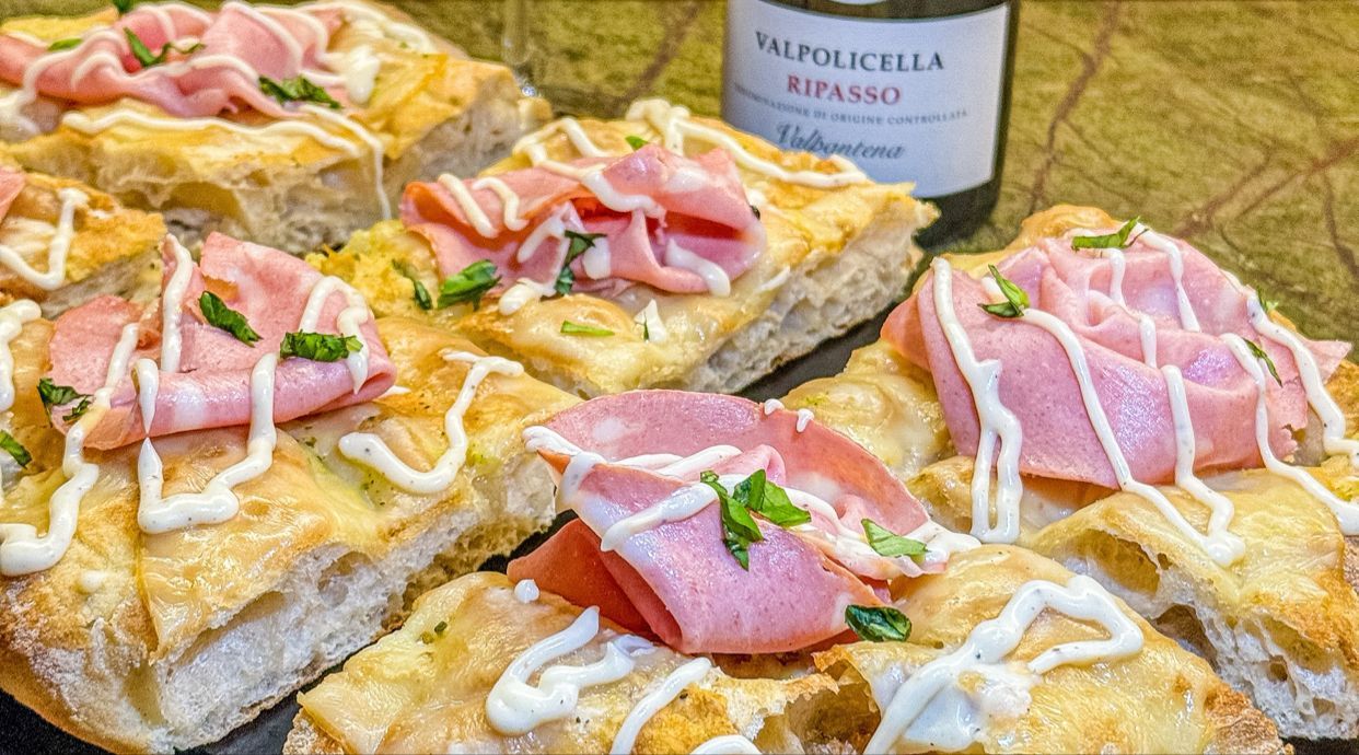 2x Tranci di Pinsa Farcita + Trilogia di Polpette su Vellutata di Creme + Bruschette Rustiche al Lardo di patanegra + Bao partenopeo+ Patate al forno + 1 bottiglia di vino "L' Amore Conta, Il Vino Pure".
