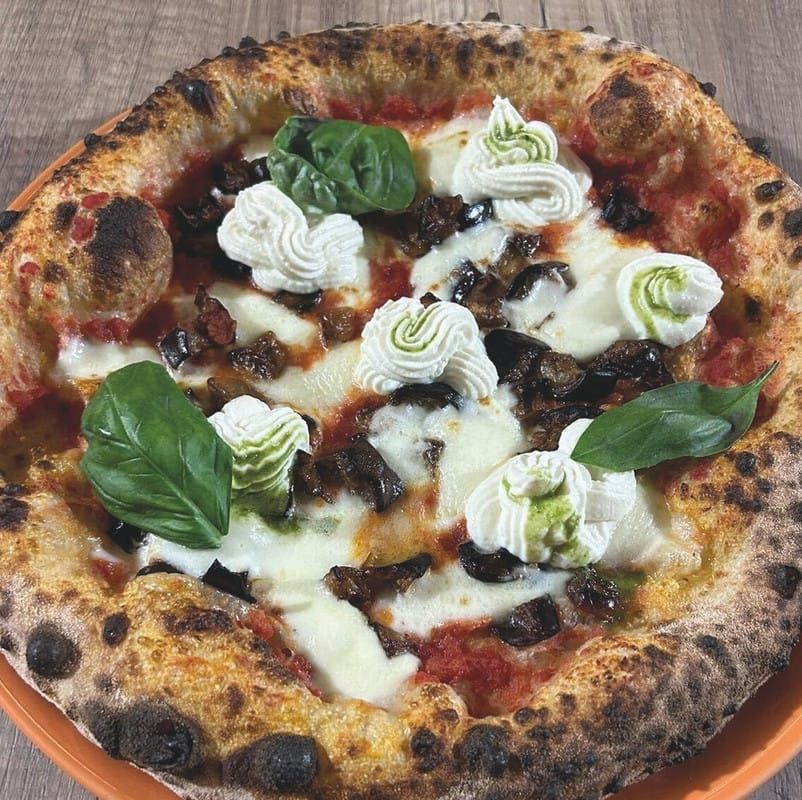 Fior di latte, friarielli, salsiccia pasqualora, provola affumicata Presidio, olio EVO