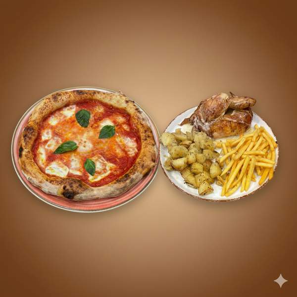 Mezzo pollo + patate miste + bevanda a scelta