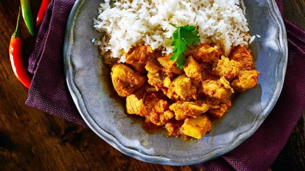 Pollo cucinato con masala e curry, piatto tipico Muglai