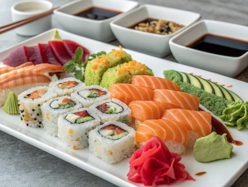 Involtini di salmone, rucola, papaya, philadelphia, all'esterno salsa teriyaki