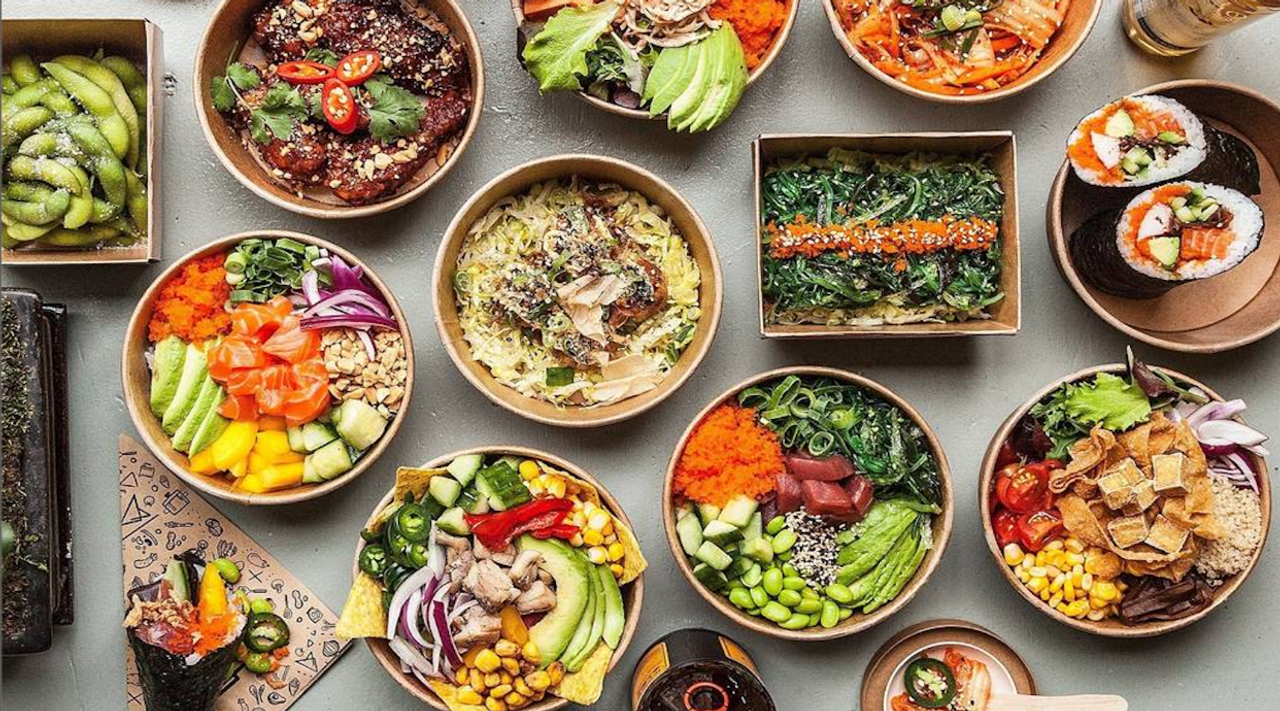 Salmone Soy Sauce, Tonno Soy Sauce, Avocado, Edamame, Cetrioli, Salsa Spicy, Mandorle e Semi di Girasole