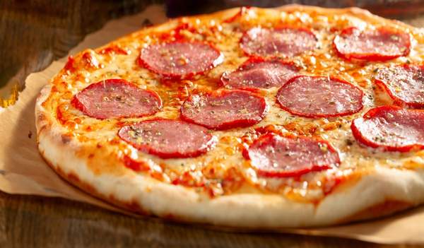 Pomodoro, mozzarella, brie, salamino, peperoni