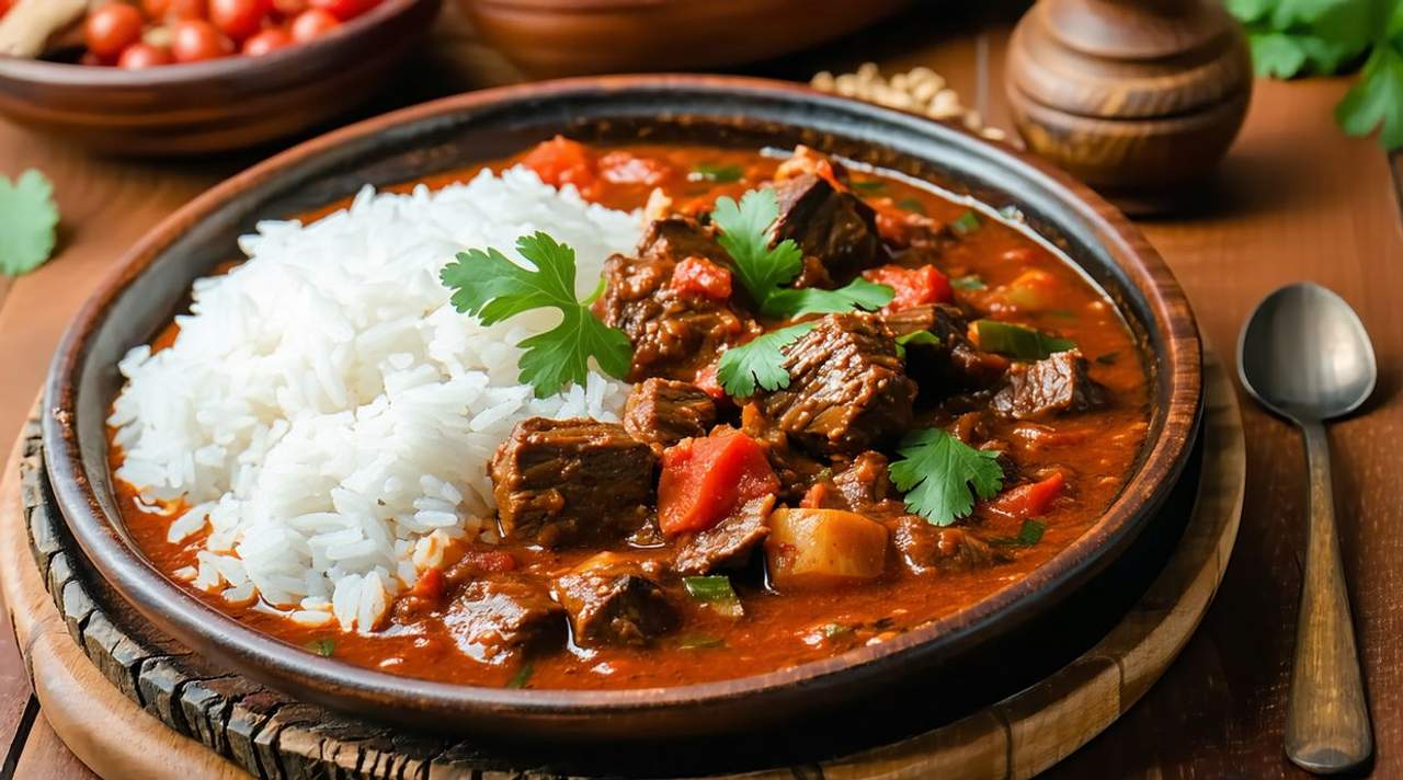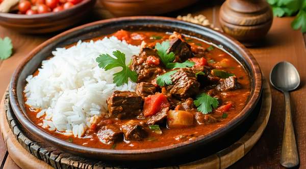 Tender beef chunks slow-cooked in a rich sauce of tomatoes, onions, and aromatic spices