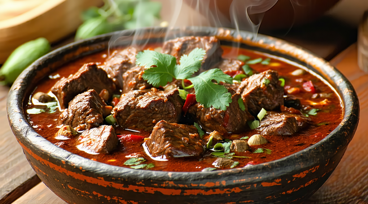 cooked in a thick sauce