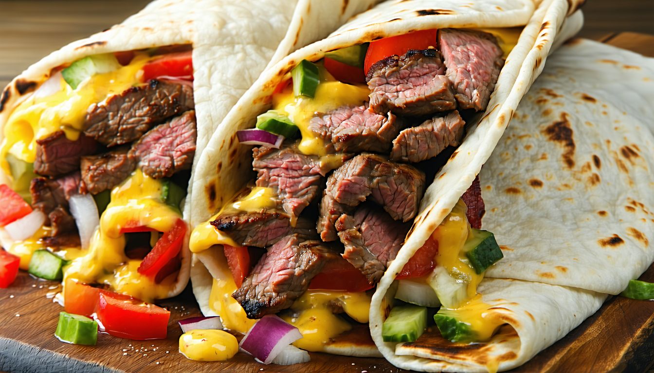 Хрустящая лепёшка с мягкой сырной начинкой и картофелем фри - отличный вариант для сытного перекуса. Тягучий сыр и картошка идеально сочетаются с нежным тестом. Чесночный соус добавляет пикантности.