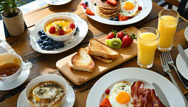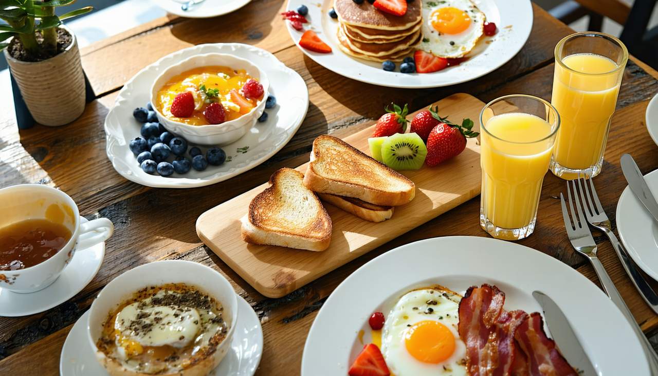 "Английский завтрак: свежайшие яйца, хрустящие тосты, свежий салат и изысканные авторские колбаски. Начните день с бодрости