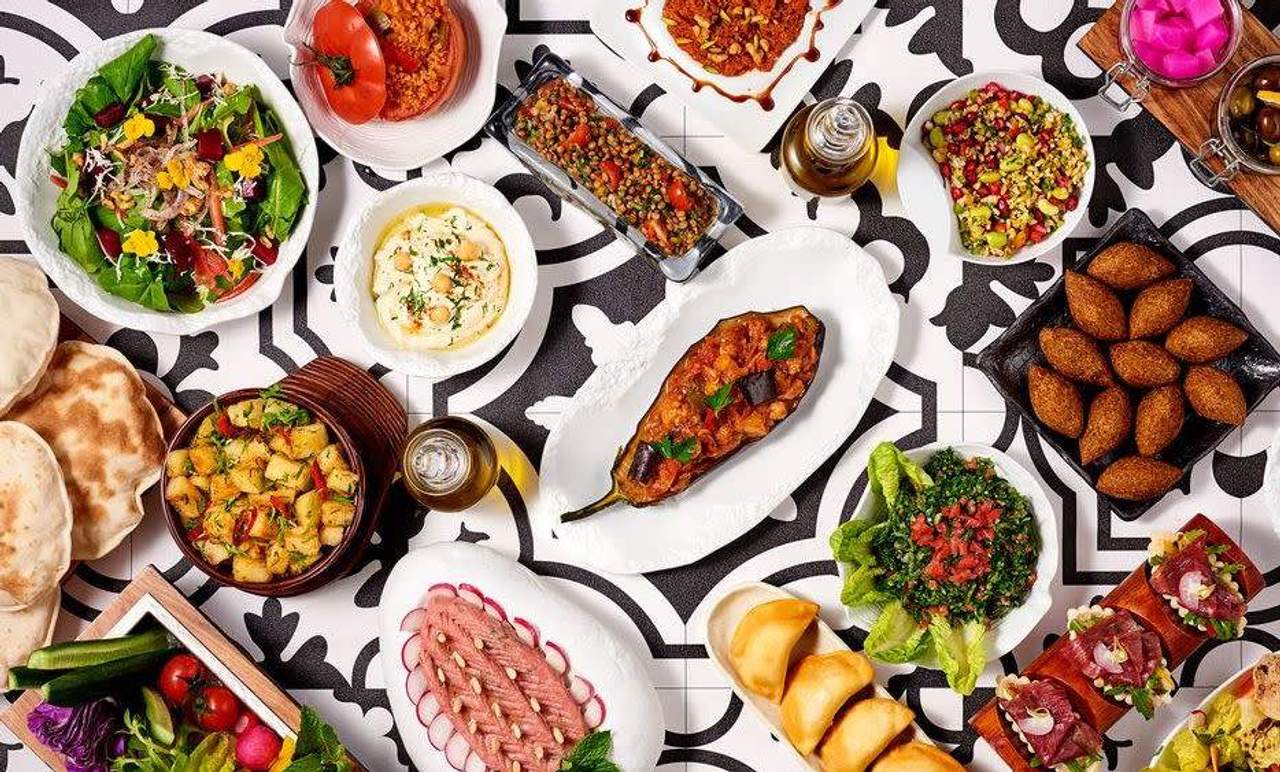 Houmous, mtabbal, taboulé, falafels, fatayer fromage et épinard, batata harra, crudités et sauce blanche + pain libanais