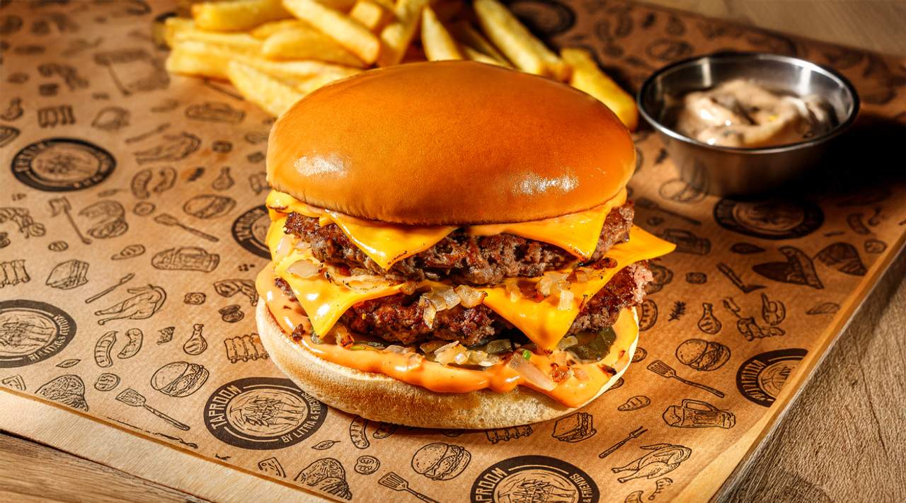 O chiflă moale cu două felii de vită smashed, cașcaval Cheddar topit, castraveți murați și ceapă albă prăjită. Totul este completat de un sos burger pentru un gust bogat și echilibrat. Servit cu cartofi prăjiți crocanți și sos Alabama BBQ. - 280g/70g/40g
