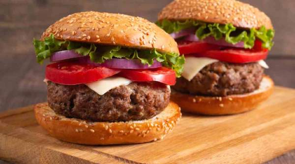 Burger sa dvije juneće pljeskavice i duplo cheddar sira, paradajz, iceberg, džem od luka, kiseli krastavci i burger sos