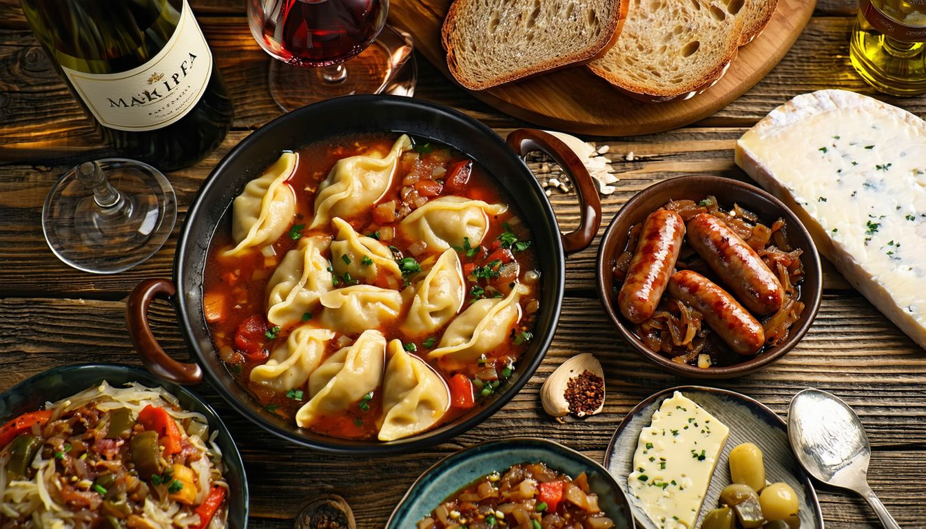 Placki ziemniaczane z gulaszem wieprzowym i surówkami 500g