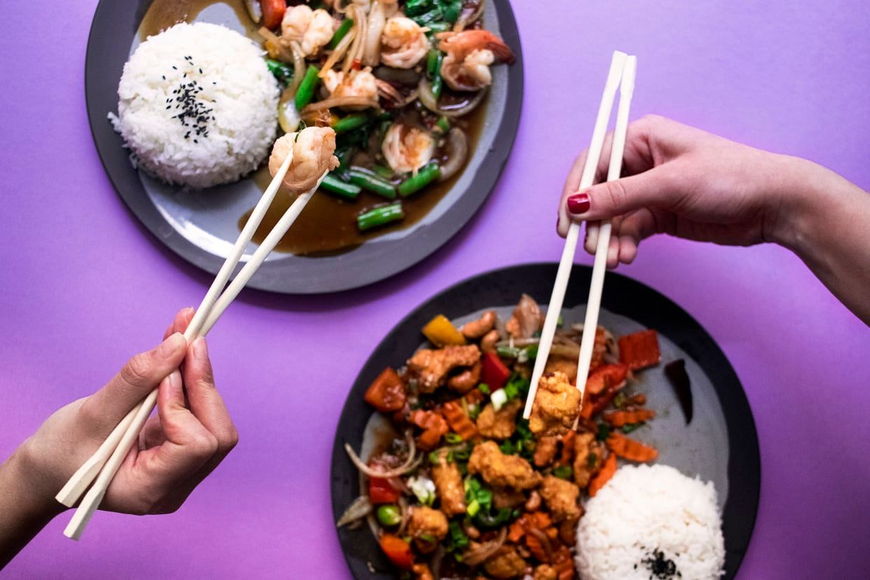 Intensywny słodko-kwaśny sos na bazie pasty chili z prażonymi orzechami nerkowca z dodatkiem marchewki, papryki, cebuli, białego sezamu i szczypiorku, podawane z ryżem jaśminowym