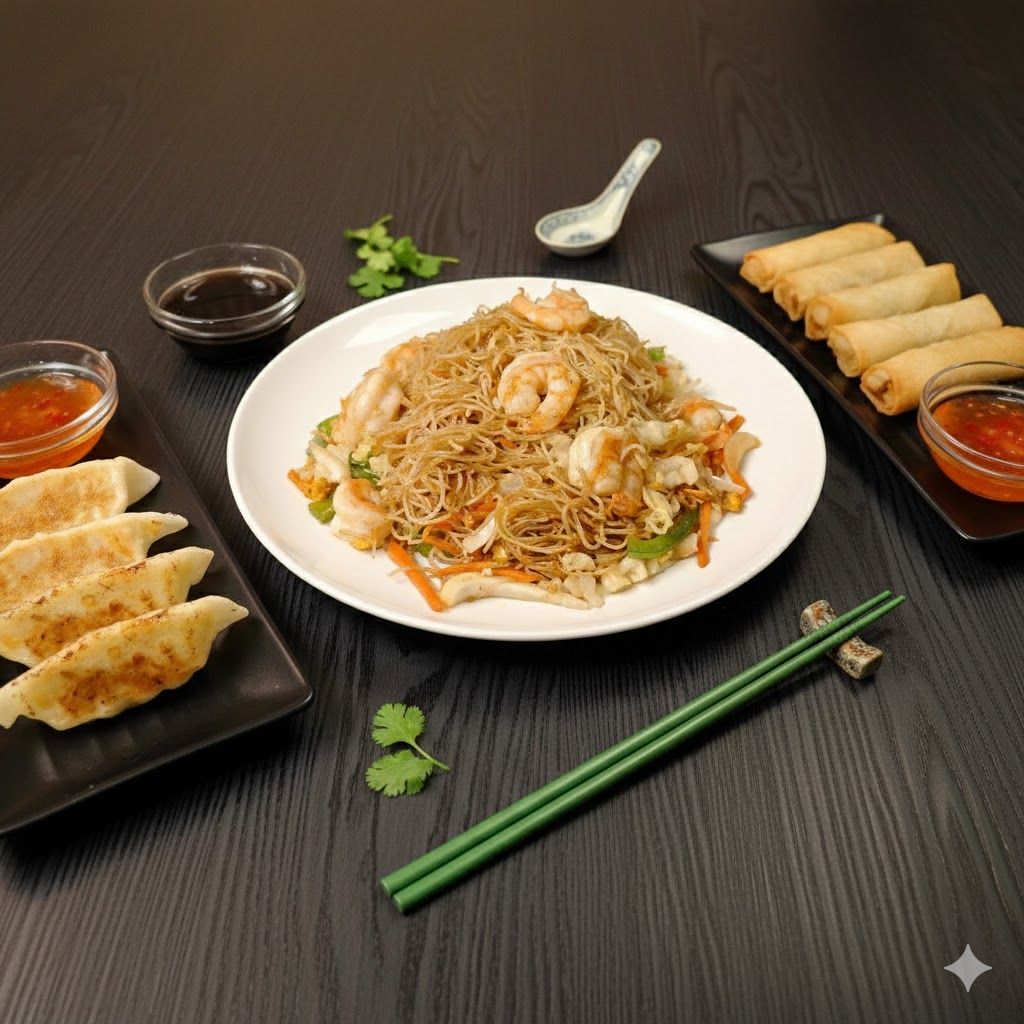 Chaumin de massa arroz , ovo, camarão , vegetais