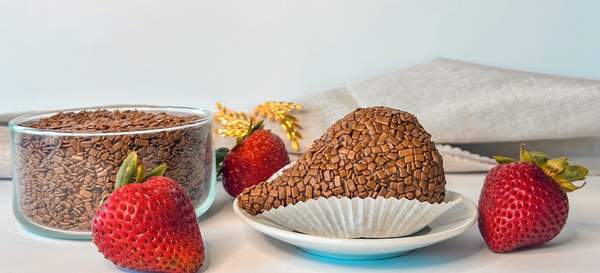 Massa de chocolate com brigadeiro de chocolate ao leite e morangos