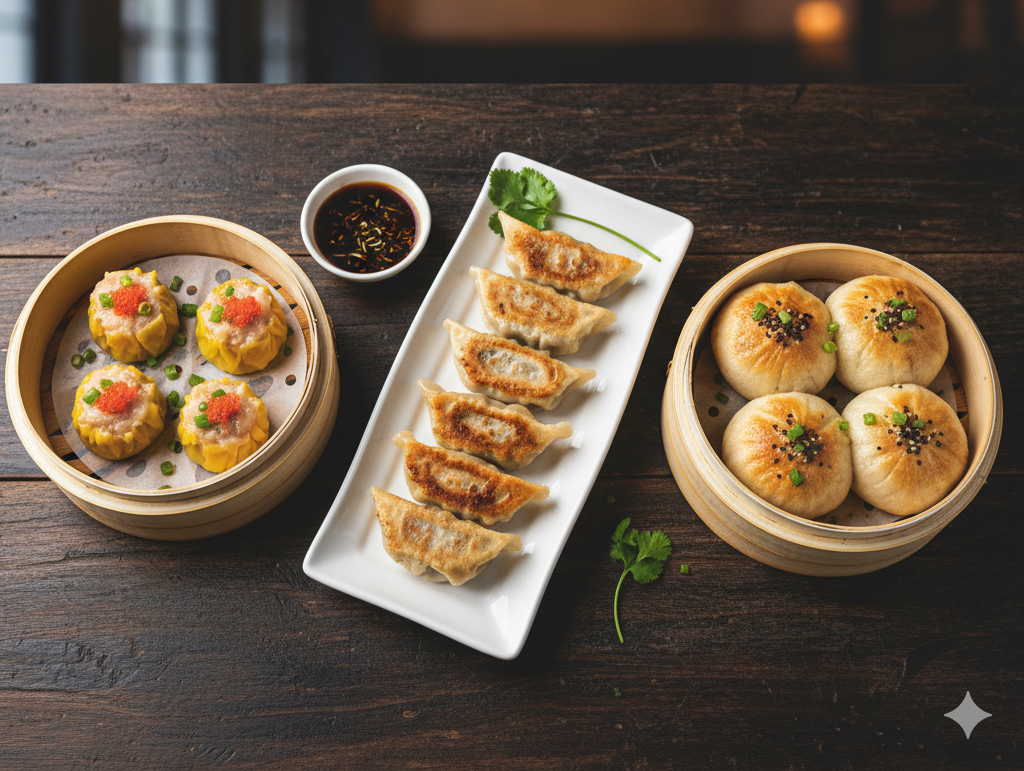 5 unidades Raviolis de frango e legumes cozidos ao vapor. Uma opção leve e saborosa de petisco asiático.
