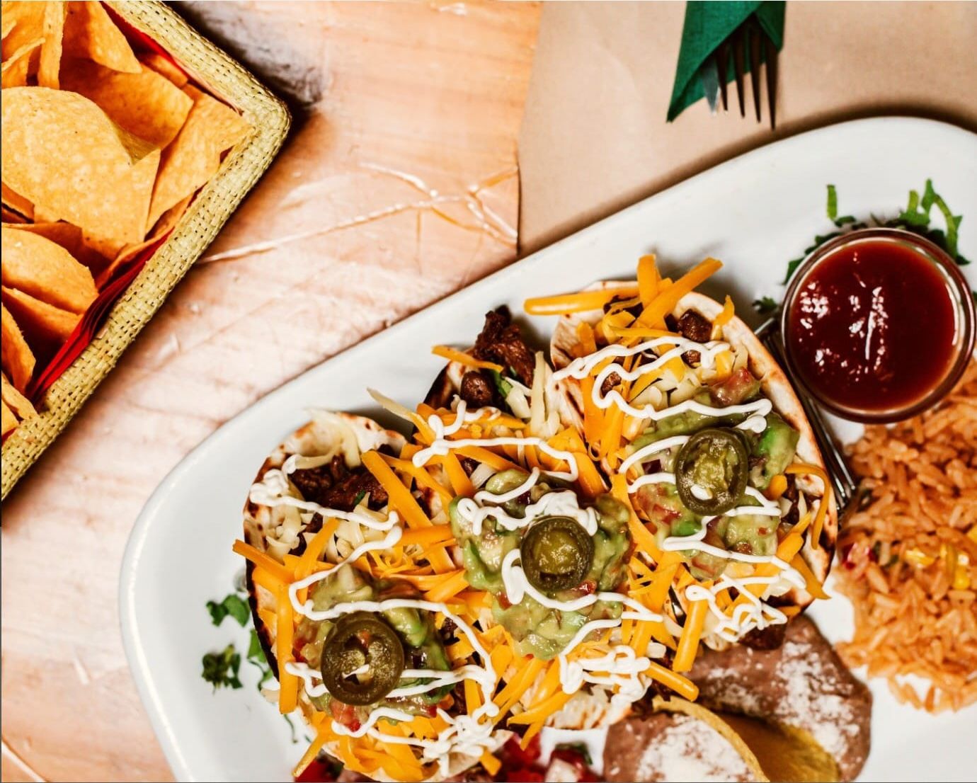 Clássico Tex-Mex cozinhado lentamente, cheio de sabor e especiarias. Servido com nachos crocantes e queijo derretido.
