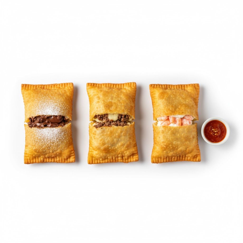 Recheado com camarões selecionados, requeijão cremoso, alho, cebola, tomate, cheiro-verde e especiarias, tudo envolvido em uma massa fina, crocante e dourada, frita na hora para garantir cremosidade e sabor em cada mordida