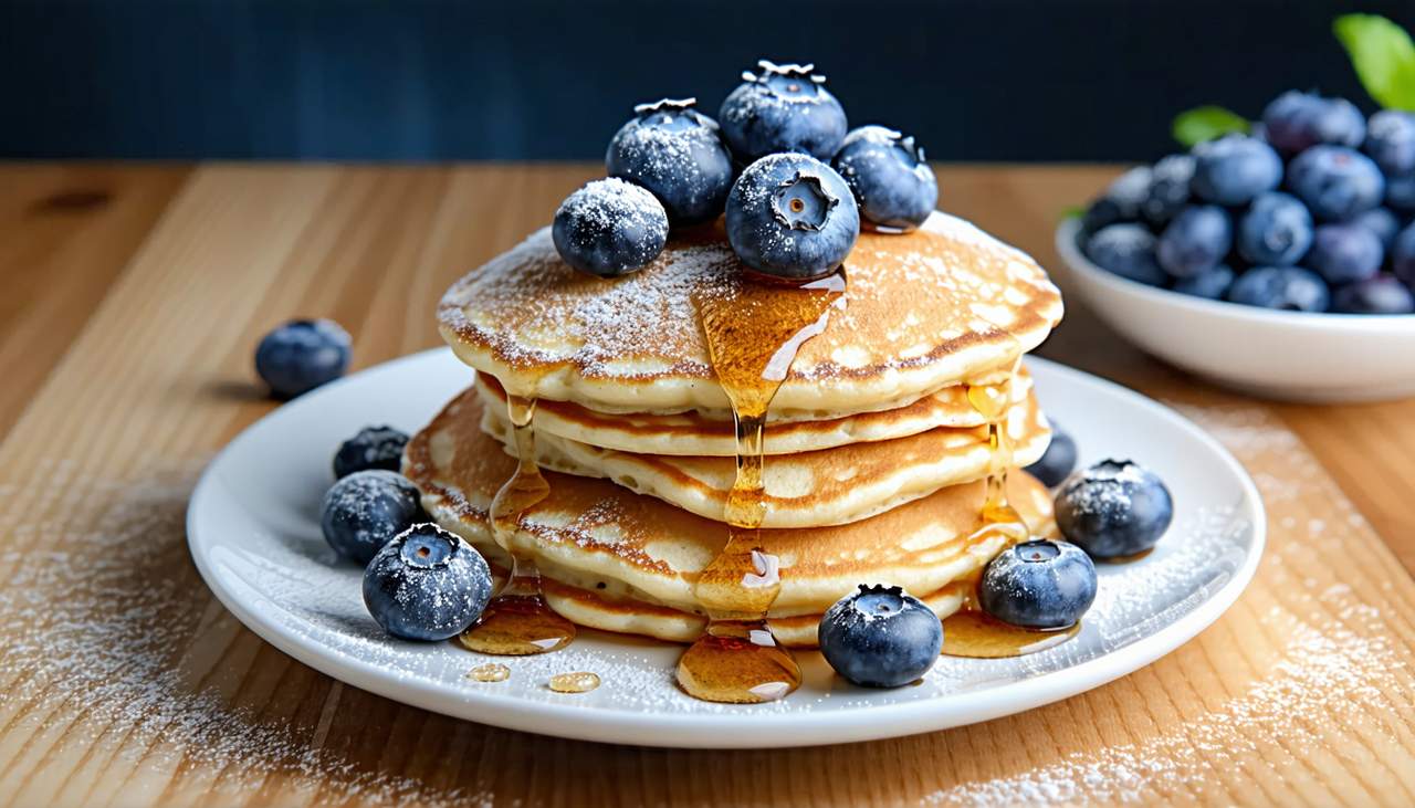 Coullis de mirtilo caseiro, manteiga batida, xarope de ácer