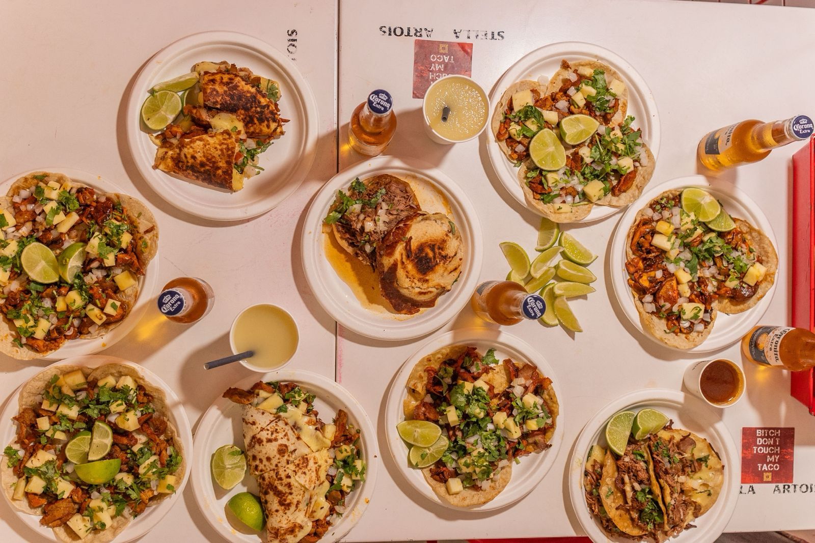 1 taco al pastor carne de porco com abacaxi, coentros, cebola e lima.