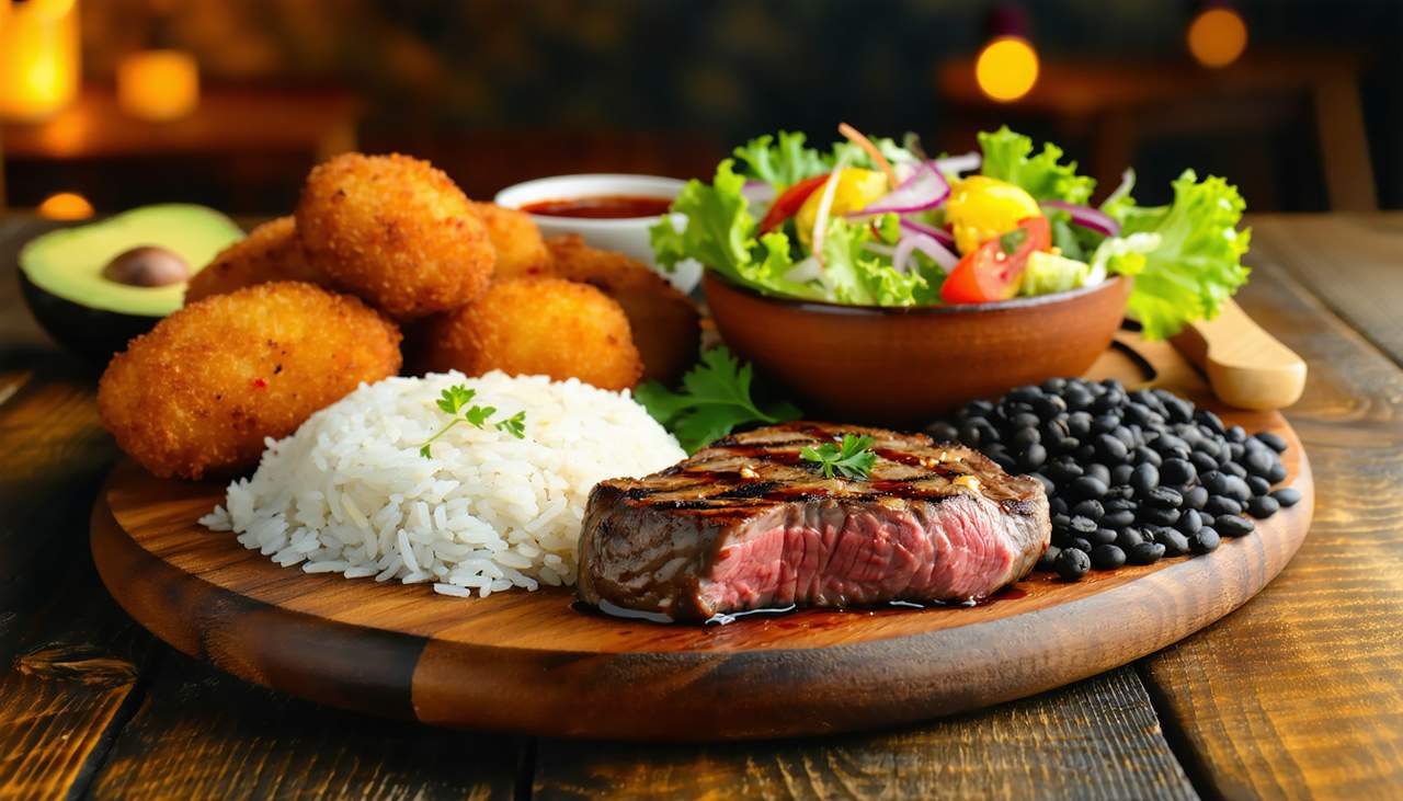 Arroz, feijão, salada e farofa
