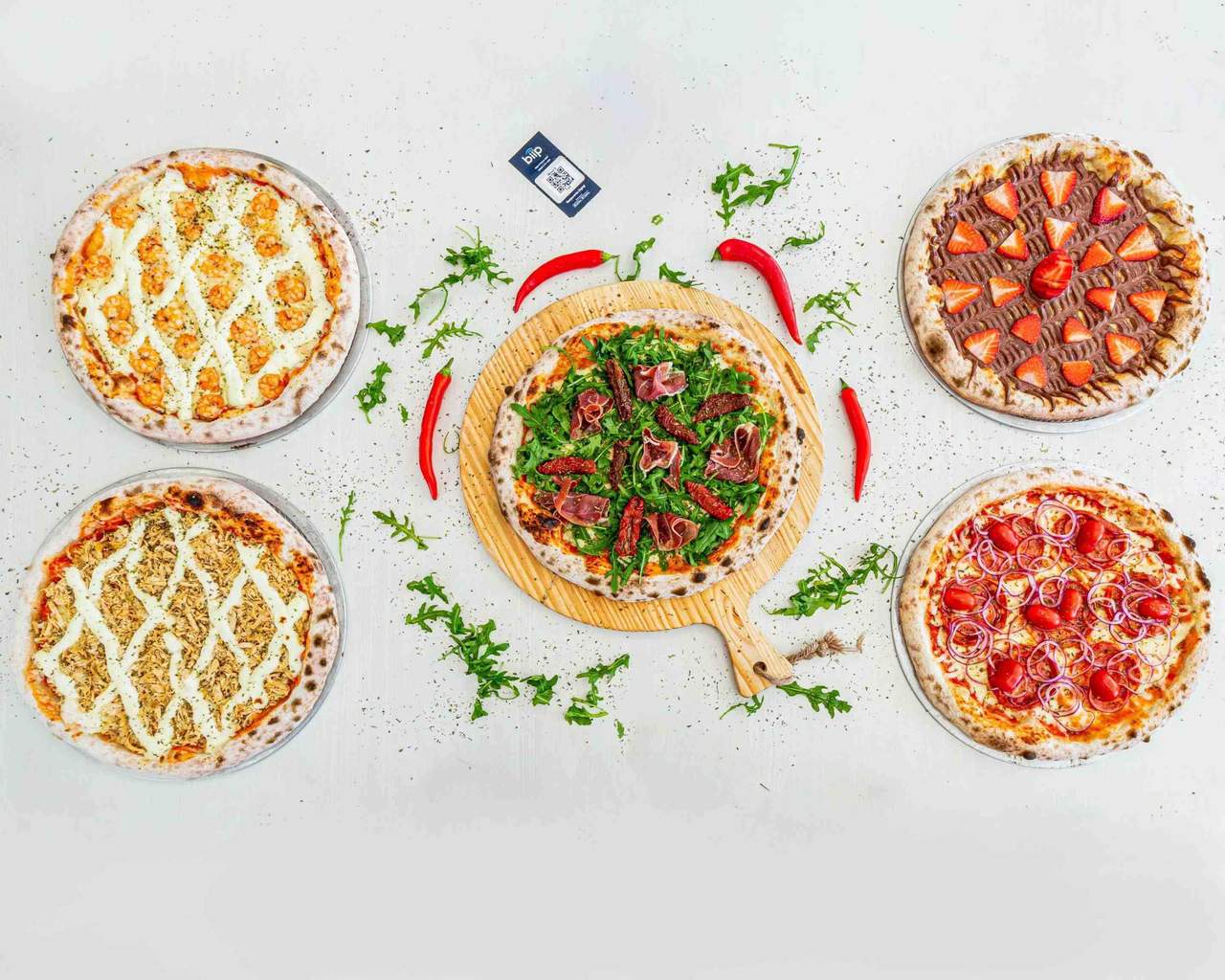 Molho de tomate, mozzarella 100%, camarão, queijo cremoso tipo catupiry e parmesão. as massas de nossas pizzas são de fermentação lenta de 48 horas