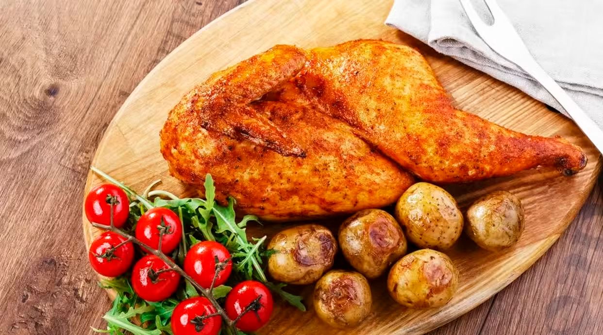 Frango Inteiro com arroz, feijão, batata frita para 2