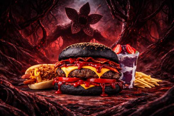 2x Black angus 200gr, 4x queijo, 2x bacon, 2x ovo, 2x cheddar, Molho Cheddar, cebola frita, 3x aros de cebola e maionese