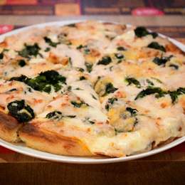 Salsa de tomate, mozzarella, espinacas, bechamel y parmesano