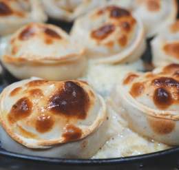 Oblea de masa argentina rellena de cebolla caramelizada, provolone, mozzarella y orégano